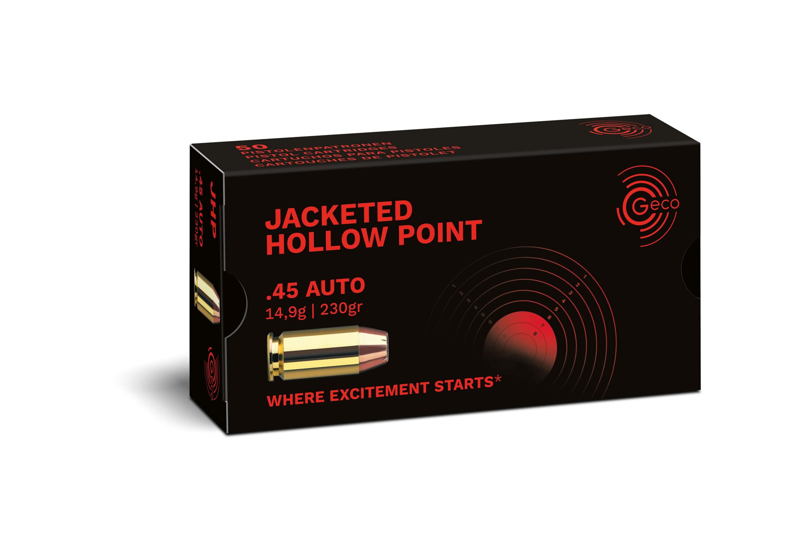 Lieferumfang: 50 Stück Geco .45 Auto JHP 230 grs