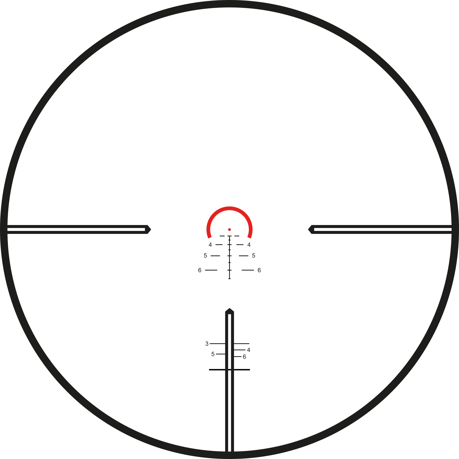 - Beleuchtetes Tac 30 Absehen mit Haltepunkten für Entfernungen und Wind