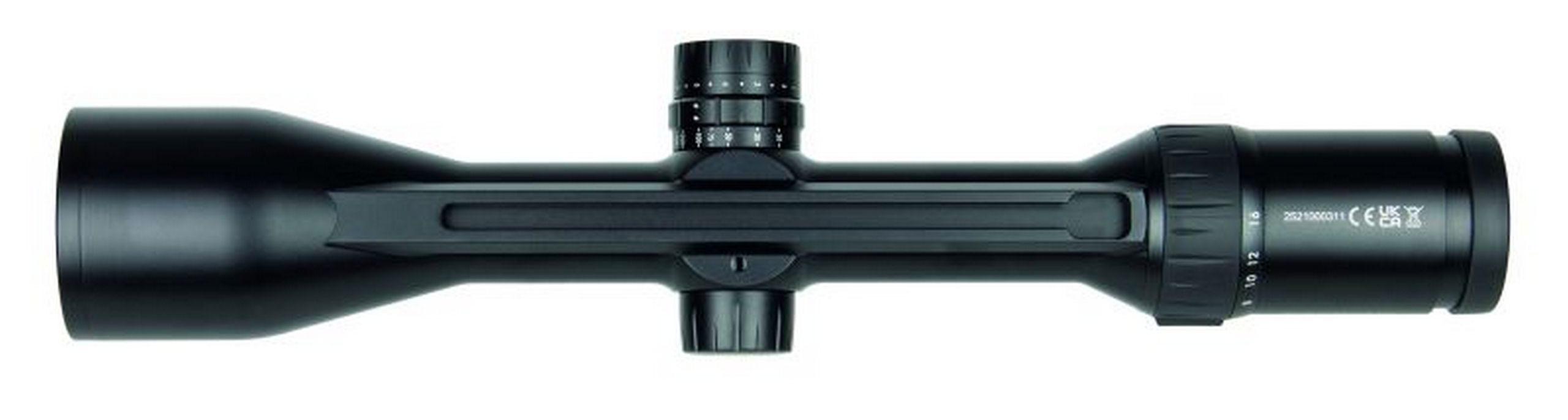 - Ballistischer Turm mit vier nummerierten Ringen für voreingestellte Distanzen